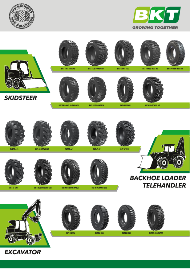 Строительные шины BKT. Мини-погрузчики с боковым поворотом, экскаваторы-погрузчики/телескопические погрузчики, экскаваторы. 2023